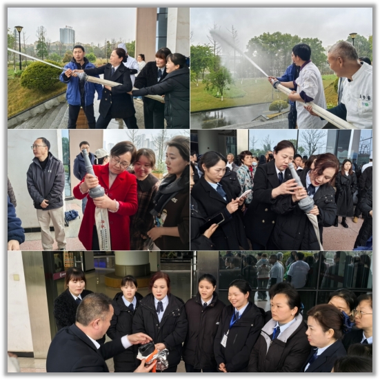 训练前,支部党员干部作现场动员,明确实训目的与岗位职责,引导全体人员树牢安全底线思维。训练中,专业人员围绕消火栓接驳、灭火器操作、防烟面罩佩戴开展示范教学与实操指导,党员骨干带头参训、示范引领,全体人员认真学习、熟练掌握初起火灾扑救技能。